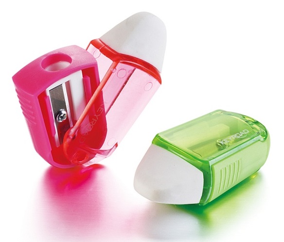 Blyantspidser m. viskelæder mix farver blisterpakke - 1 stk