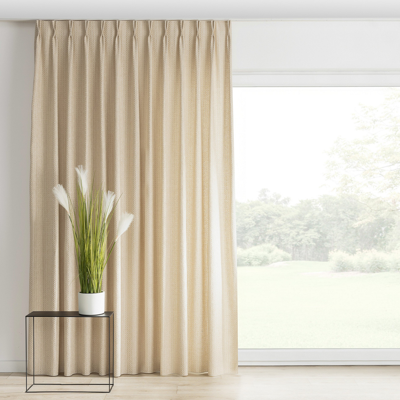 Gardin med dobbel fast læg ✔ Skræddersyet - klar til montering hos dig✔ Direkte fra systuen - uden fordyrende mellemled✔ Perfekt fald - med indsyet tyngdebånd og ekstra tyngde i hjørner ved søm✔ Kvalitetstekstiler – hovedsaglig fra Portugal✔ EU produceret - vores egen systue Gardin med dobbel fast læg er beregnet til montering i en gardinskinne og skaber jævne, ca. 7 cm dybe bølger, hvilket giver et stilrent og elegant udtryk. Velegnet til store vinduespartier, hvor gardinet nemt skal kunne trækkes til og fra. Bølger og montering Gardinet er sammensyet med læg og har kroge indsat med intervaller på ca.13 cm, der gør at folderne aldrig hives flade. Opmåling ved 2 stk pr. vindue Bredde: Mål fra midten af gardinskinnen til skinnens yderkant. Rund altid op til nærmeste cm, der kan deles med 10 cm. Højde: Mål fra 1 cm under bunden af skinnen og ned. Husk, at gardinskinnen altid vil være synlig – det er en forudsætning for, at systemet fungerer korrekt. Tolerancer Størrelsen vil altid have en tolerance på +/- 5 cm i bredden og +/- 2 cm i længden. Stoffets bredde og sammensyning Ved bestilling af f.eks. bredde 130 cm vil stoffet være bredere og vil dække 130cm når det er trukket for - modsat andre gardintyper, der først skal rynkes og dermed formindskes dækkefladen fra feks 130 cm til 65 cm. Ved bestilling af gardin i bredde 130cm, hvor stofbanen er 140 cm, vil 2 stofbaner blive syet sammen. Se stofbredde under Valgt stof. Ved mønstrede tekstiler tilpasses mønsterrapporten Mønsterets placering Mønsterets størrelse og højdetilpasning på billedet er vejledende. Gardiner fremstillet af mønstrede tekstiler vil ikke altid have præcis samme mønsterplacering. Afslutning og tyngdebånd Gardiner afsluttes forneden med bundsøm og indsyede tyngde. Dog er der ikke tyngde i kollektionen Velvet. Følgende kollektioner afsluttes alene med tyngdebånd som skaber de mest jævne folder: Alara Premium Vintage (145-17, 139-01, 139-02) Dimout 300 cm Blackout Soft Blackout Double Blackout FR Premium Balance Crema Imperia Premium Quadro (143-90, 143-91, 143-92, 143-93, 144-99) Romantica (128-77, 128-88, 142-90, 181-15, 174-93, 184-41, 128-09, 128-10, 181-16, 181-17) Sensuale Premium Scotti Delicate Premium Harmony Intenso Premium 144-15 Edinburgh 144-95 Vibes Natural Touch Secret Garden (145-06, 145-07) Ved lange gardiner kan du med fordel bruge denne gardin-fører stang