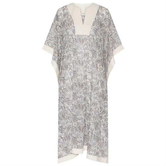 Den smukke Hati kjole fra Heartmade i Delicate Bloom printet har en oversized pasform og falder let og flot om kroppen. Kjolen er inspireret af kaftan-stilen med en V-udskæring og brede, løse ærmer. Kjolen har de fineste kontrastdetaljer ved hals, ærmer og kant og den lette og bløde kvalitet gør den behagelig at have på. En perfekt kjole til de varme dage. Brug den med sandaler for et afslappet sommerlook, eller style den med hæle og smykker, hvis du vil gøre den mere elegant.