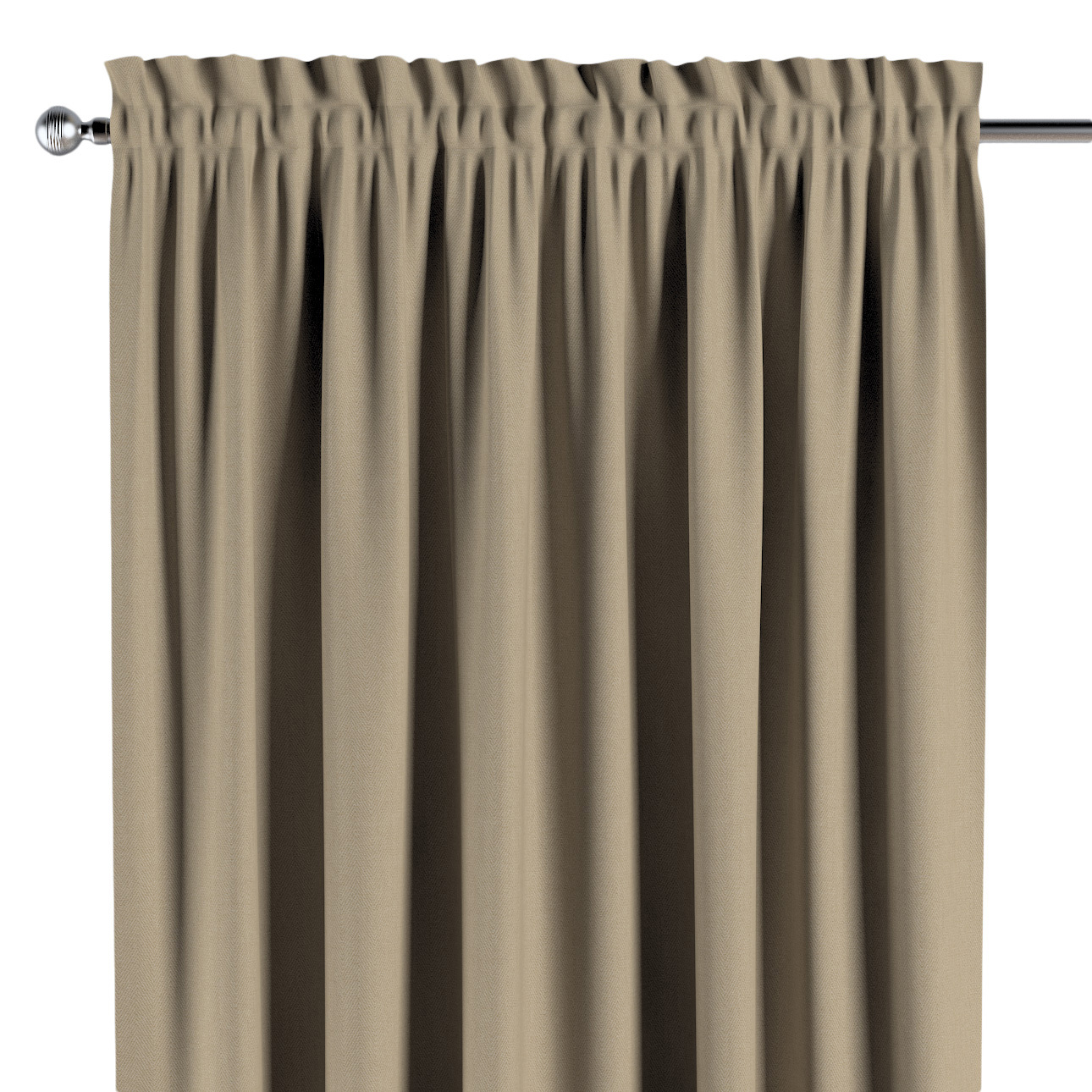 Gardin med løbegang og rynkebånd ✔ Skræddersyet - klar til montering hos dig✔ Direkte fra systuen - uden fordyrende mellemled✔ Perfekt fald - med indsyet tyngdebånd og ekstra tyngde i hjørner ved søm✔ Kvalitetstekstiler – hovedsaglig fra Portugal✔ EU produceret - vores egen systue Gardin med 6,5cm løbegang og rynkebånd og 5cm flæse. Specielt velegnet til fingerkroge, da flæsen vil dække disse store kroge Mål og bestilling Længden måles fra undersiden af gardinstangen, og det er bredden før rynkning, der skal angives. Du kan vælge at bruge de nederste "lommer" i rynkebåndet til gardinkrogene, så gardinet bliver løftet ca. 15 mm. Da skal du tillægge 15 mm i længden. Hvis du bruger fingerkroge, skal du bruge begge rækker af 'lommer' til disse. Vi tillægger selv de 5 cm til flæsen. Bredde og rynkning En gardinbredde på 130 cm formindskes til 65-100 cm efter rynkning. Montering og anvendelse Bruges til gardinskinne og små gardinkroge, som ikke følger med. Da rynkebåndet er åben i hver side (løbegang), kan gardinet dog også bruges til en gardinstang uden glidere. Bredere gardiner Hvis gardinet er bredere end 130 cm, kan der være behov for 2 eller flere stofbaner. Se stofbredde under Valgt stof. Sammensyningen er kun lidt synlig. Mønster-tilpasning Ved gardiner bredere end 130 cm tager vi hensyn til mønsteret på stoffer med striber, firkanter og små mønstre. Ved større mønstre undgås unødig stofspild, og mønstret er derfor ikke altid tilpasset i sammensyningen. Forhør gerne om eventuel merpris. Kortere længder Ønsker du et gardin kortere end 100 cm, noter dette ved Meddelelse til os. Prisen er dog den samme som for 100 cm. Tolerancer Der kan forekomme måleafvigelse på +/- 2 cm. Bestilling pr. vindue 1 stk = 1 fag. Til ét vindue bestilles der derfor 2 stk. Mønsterets placering Mønsterets størrelse og højdetilpasning på billedet er vejledende. Gardiner fremstillet af mønstrede tekstiler vil ikke altid have præcis samme mønsterplacering. Afslutning og tyngdebånd Gardiner afsluttes forneden med bundsøm og indsyede tyngde. Dog er der ikke tyngde i kollektionen Velvet. Følgende kollektioner afsluttes alene med tyngdebånd som skaber de mest jævne folder: Alara Premium Vintage (145-17, 139-01, 139-02) Dimout 300 cm Blackout Soft Blackout Double Blackout FR Premium Balance Crema Imperia Premium Quadro (143-90, 143-91, 143-92, 143-93, 144-99) Romantica (128-77, 128-88, 142-90, 181-15, 174-93, 184-41, 128-09, 128-10, 181-16, 181-17) Sensuale Premium Scotti Delicate Premium Harmony Intenso Premium 144-15 Edinburgh 144-95 Vibes Natural Touch Secret Garden (145-06, 145-07) Ved lange gardiner kan du med fordel bruge denne gardin-fører stang