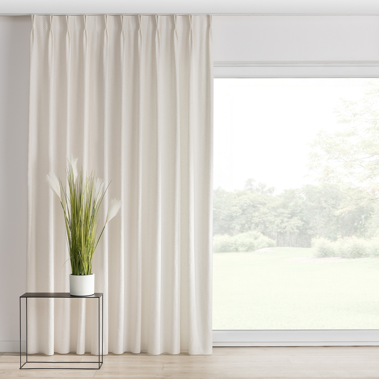 Gardin med dobbel fast læg ✔ Skræddersyet - klar til montering hos dig✔ Direkte fra systuen - uden fordyrende mellemled✔ Perfekt fald - med indsyet tyngdebånd og ekstra tyngde i hjørner ved søm✔ Kvalitetstekstiler – hovedsaglig fra Portugal✔ EU produceret - vores egen systue Gardin med dobbel fast læg er beregnet til montering i en gardinskinne og skaber jævne, ca. 7 cm dybe bølger, hvilket giver et stilrent og elegant udtryk. Velegnet til store vinduespartier, hvor gardinet nemt skal kunne trækkes til og fra. Bølger og montering Gardinet er sammensyet med læg og har kroge indsat med intervaller på ca.13 cm, der gør at folderne aldrig hives flade. Opmåling ved 2 stk pr. vindue Bredde: Mål fra midten af gardinskinnen til skinnens yderkant. Rund altid op til nærmeste cm, der kan deles med 10 cm. Højde: Mål fra 1 cm under bunden af skinnen og ned. Husk, at gardinskinnen altid vil være synlig – det er en forudsætning for, at systemet fungerer korrekt. Tolerancer Størrelsen vil altid have en tolerance på +/- 5 cm i bredden og +/- 2 cm i længden. Stoffets bredde og sammensyning Ved bestilling af f.eks. bredde 130 cm vil stoffet være bredere og vil dække 130cm når det er trukket for - modsat andre gardintyper, der først skal rynkes og dermed formindskes dækkefladen fra feks 130 cm til 65 cm. Ved bestilling af gardin i bredde 130cm, hvor stofbanen er 140 cm, vil 2 stofbaner blive syet sammen. Se stofbredde under Valgt stof. Ved mønstrede tekstiler tilpasses mønsterrapporten Mønsterets placering Mønsterets størrelse og højdetilpasning på billedet er vejledende. Gardiner fremstillet af mønstrede tekstiler vil ikke altid have præcis samme mønsterplacering. Afslutning og tyngdebånd Gardiner afsluttes forneden med bundsøm og indsyede tyngde. Dog er der ikke tyngde i kollektionen Velvet. Følgende kollektioner afsluttes alene med tyngdebånd som skaber de mest jævne folder: Alara Premium Vintage (145-17, 139-01, 139-02) Dimout 300 cm Blackout Soft Blackout Double Blackout FR Premium Balance Crema Imperia Premium Quadro (143-90, 143-91, 143-92, 143-93, 144-99) Romantica (128-77, 128-88, 142-90, 181-15, 174-93, 184-41, 128-09, 128-10, 181-16, 181-17) Sensuale Premium Scotti Delicate Premium Harmony Intenso Premium 144-15 Edinburgh 144-95 Vibes Natural Touch Secret Garden (145-06, 145-07) Ved lange gardiner kan du med fordel bruge denne gardin-fører stang