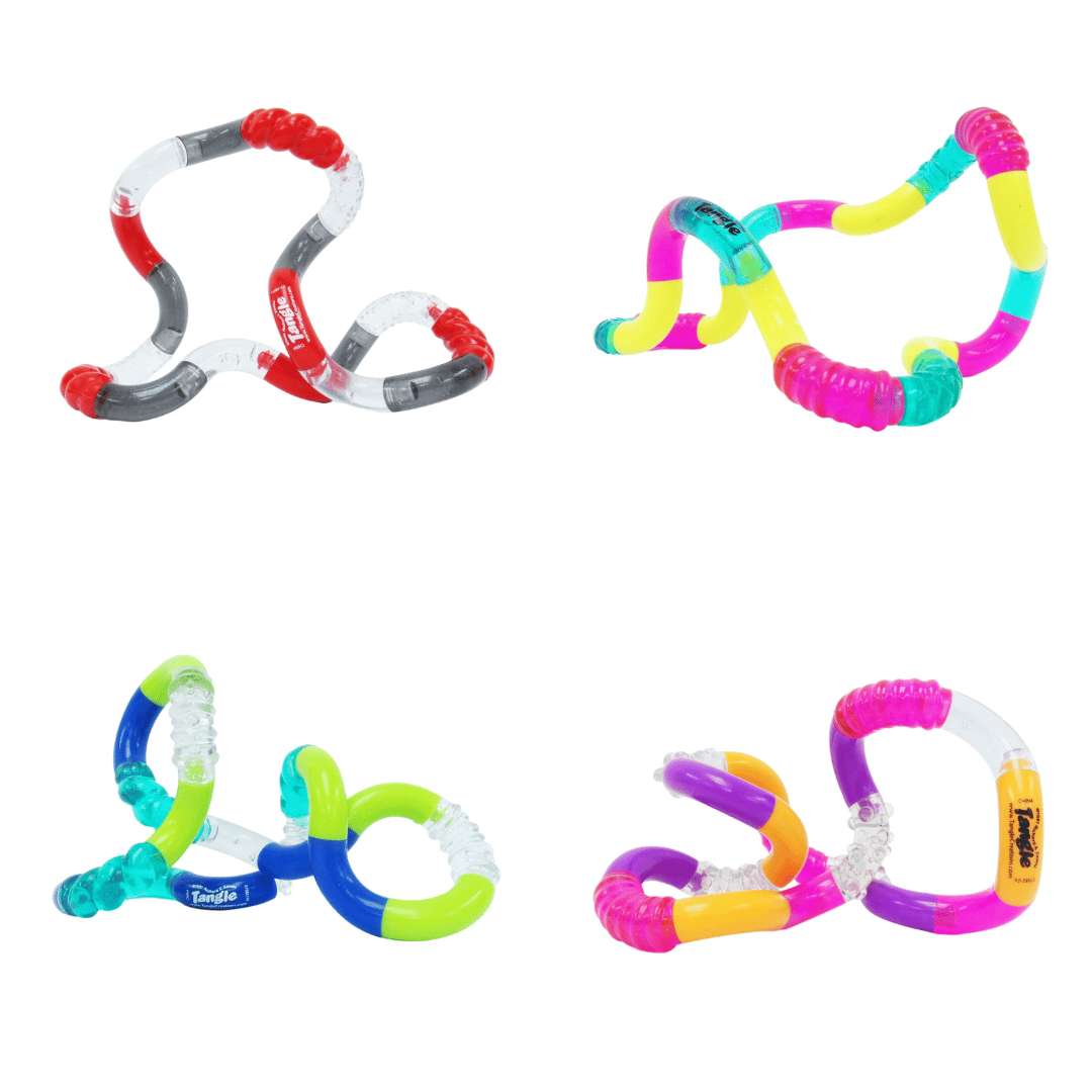 Tangle® Jr. Textured er en markant sanselig fidget med ujævne, riflede og varierede overflader, der inviterer til berøring og udforskning. De strukturerede sektioner giver masser af taktil stimulering og gør denne variant særligt velegnet til dem, der har glæde af tydeligt sanseinput gennem hænderne. Den velkendte Tangle®-bevægelse – at dreje, vende og forme igen og igen – kombineres her med forskelligartede teksturer, som gør oplevelsen både engagerende og regulerende. En fidget, der er svær at lægge fra sig. Fidget der understøtter fokus og sansebehov Rolig fidgeting kan hjælpe med at regulere uro, dæmpe nervøs energi og skabe bedre fokus. Tangle® Jr. Textured bruges ofte i læringssituationer, pauser og ved stillesiddende aktiviteter, hvor hænderne har brug for beskæftigelse for at støtte opmærksomheden. De varierende strukturer gør det muligt at skifte sanseinput undervejs, hvilket mange oplever som ekstra beroligende. Hvem er den velegnet til? Børn, unge og voksne med behov for tydelig taktil stimulering Personer der profiterer af strukturerede overflader Brug i skole, institution og hjemmet Situationer hvor fokus, regulering og sanseinput er i centrum Sansemæssige og motoriske fordele Giver kraftig og varieret taktil stimulering Styrker finmotorik og håndkoordination Kan virke beroligende ved uro og nervøsitet Understøtter bevægelighed i hænder og håndled Kan støtte arbejdet med vaner og selvregulering Produktinformation Variant: Tangle® Jr. Textured Overflade: Varierende strukturer og teksturer Farver: Klare farver og delvist transparente sektioner Opbygning: 18 buede led Mål: Samlet: ca. 3,8 × 5,1 × 3,8 cm Udfoldet længde: ca. 17,8 cm Sikkerhed På grund af de adskillelige led udgør Tangle® Jr. Textured en kvælningsrisiko for børn under 3 år.