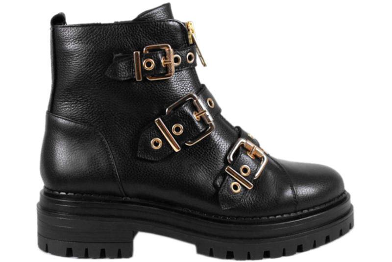 STOCKHOLM. Sort damestøvle fra Stockholm i skind. Støvlen har en lynlås i farven guld og 3 remme henover vristen med små guldringe. Støvlen har en lynlås på indersiden af støvlen, som gør det nemt at komme i og af skoen. Støvlen har en grov profil gummisål, hvilket gør at støvlen formår at have det rå, men samtidig feminine look. Indvendigt er den foret med skind og tekstil. Super eksklusiv støvle fra Stockholm. .. Læs mere på https://www.juul-sko.dk/damesko/ankelstoevler/stockholm-9561-str36.htm