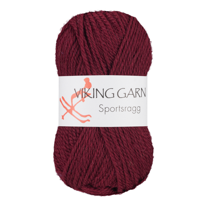 Viking Sportsragg - 555 Mørk burgunder, Garntype:Uld/Akryl/Nylon, Indhold:60% uld, 20% akryl & 20% nylon, Garngruppe:A/B (22-23 ), Vægt:50 g, Længde:100 m, Anbefalede Pinde/Nåle:3,5 mm, Strikkefasthed:23 m, Håndtering:Uldvask, max 30°C / Tørres fladt, fra Viking. Køb hos Kukuk.