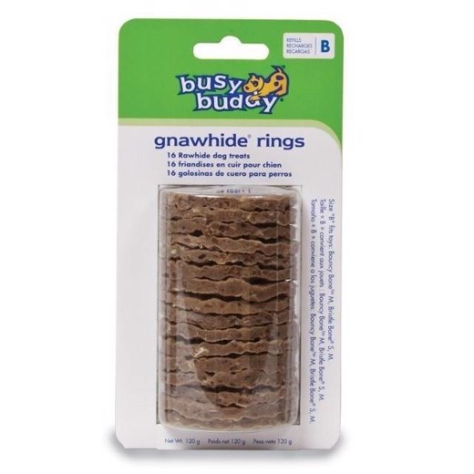 Refill B til Busy Buddy Bouncy Bone Legetøj Medium som er et 3-i-én legetøj: nylon ben, gummi bold, og genopfyldelig godbidde legetøj.
