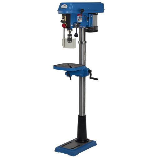 Manuel, remdrevet bænkboremaskiner og vertikale boremaskiner. Til værksteder og lettere industri. Hastigheden ændres ved hjælp af en remskive; trearmet nav til manuel fremføring. Bordet hæves og sænkes med en tandstang, kan indstilles i en vinkel på 45°-0°-45° og kan svinges til siden. Med kuglelejemonteret spindel. Justerbar boredybde med gradueret skala. Lasersigte for præcis boring. Boreskærmen kan hæves og sænkes med en mikroafbryder.Leveres komplet med 16 mm hurtigspændepatron, borepatrondorn, uddriver samt diverse unbrakonøgler, 1-hastighedsmotor – kapslingsklasse IP 20. 3-lederkabel og afbryder med nulspændingsbeskyttelse.Antal faser1-faseFremføringManuelModelBordSpindelbevægelse80.0 mmAfstand spindelnæse-bord, maks.410 mmSøjlens diameter70 mmKapslingsklasseIP 20Motorspænding230V 50 HzSpindelkonusMK 2Vægt53.0 kgBorekapacitet i stål16 mmT-notbredde14 mmSpindelhastighed210-2580 r/minAfstand spindelcentrum-søjle165 mmMotoreffekt0.55 KWProducentens betegnelse16 DDB