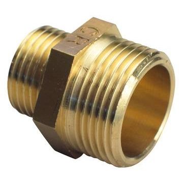 Messing brystnippel 2" x 11/4" Fitting af messing. Har udvendigt gevind i begge ender. Den ene nippel er reduceret i forhold til den anden.