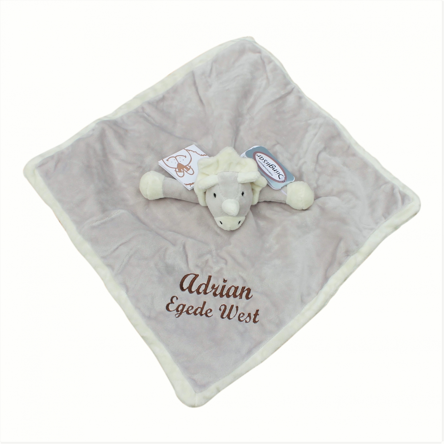Gør nussekluden personlig og få barnets fornavn, fødselsdato, vægt og længde broderet på