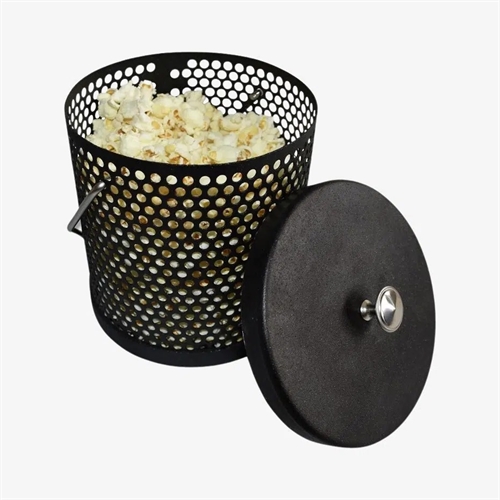 Denne robuste popkornsgryde i stål er udviklet til udendørs brug over åben ild. Med en kapacitet på 4 liter kan du lave popcorn til hele gruppen, hvad enten det er ved bålet, på stranden eller hjemme i haven. Det perforerede design og den tykke stålbund sikrer jævn varmefordeling, så kernerne bliver ensartet poppet.