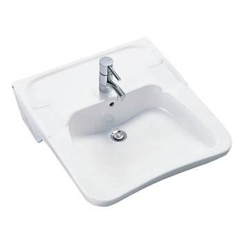 Ifö håndvask 2512 Håndvask med god plads under vaskebassinet. Stort bassin til den som skal have hjælp til at blive vasket. Solide kanter som giver god støtte for arme og hænder. Til boltemontering.