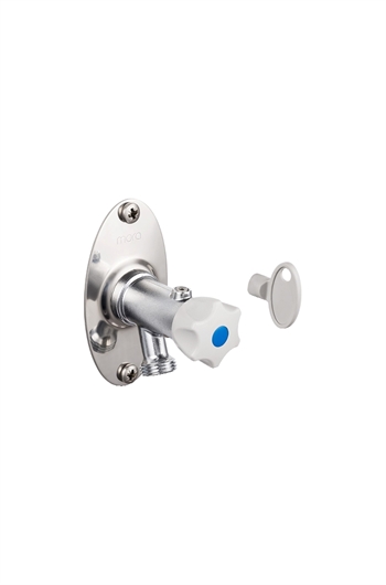Mora Garden udendørshane med nøgle og greb til vægtykkelse 320-545 mm. selvdrænende. typegodkendte kontraventil. afkortelig. vægflange: højde 110 mm. bredde 60 mm.