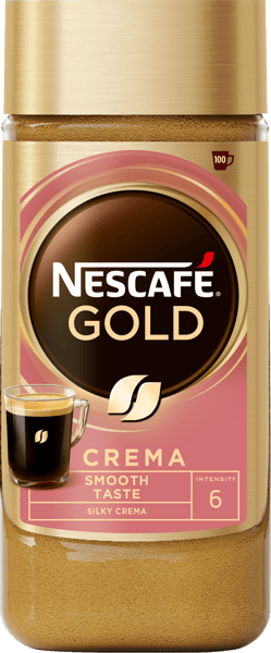 Nescafé Gold Crema har den samme gode smag som Nescafé Gold. Smagen er fyldig og intens, og som noget nyt har Nescafé Gold Crema en gylden, delikat crema, som lægger sig som et blødt lag på toppen af kaffen.