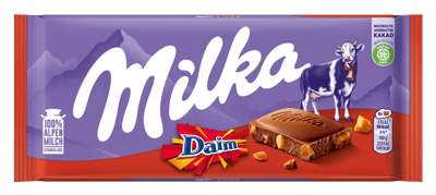 Blød lys ægte 100 % Alpin mælkechokolade med knasende stykker af original Daim-karamel. Milka Daim kombinerer to af de bedste fra chokoladehylden til en uimodståeligt knasende oplevelse, der smelter på tungen. Indeholder 100 g.