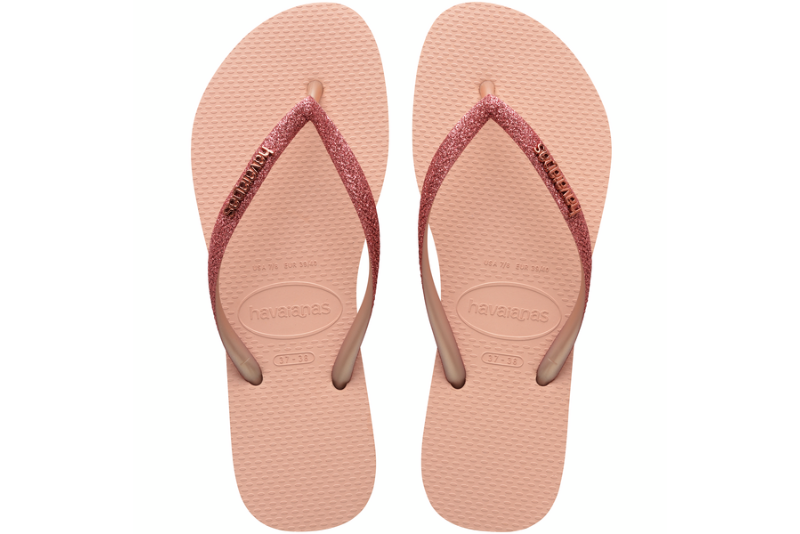 Havaianas slim glitter klipklapper i lyserødt gummi str