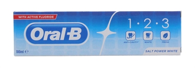 Oral B 100ml Toothpaste Salt Power White hjälper till att avlägsna plack och säkerställer rena, friska och starkare tänder samt förhindrar karies och ger ett skonsamt och effektivt skydd för dina tänder. Används två gånger dagligen. Med sina vita accelerationer hjälper det dig att få 1 nyans vitare tänder på en vecka. Emaljskydd för daglig användning.
