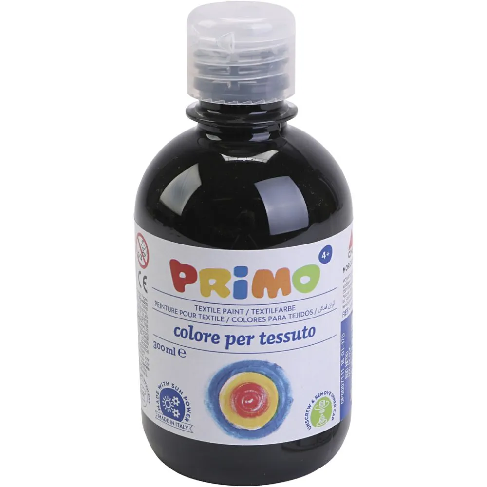 Med denne semidækkende, vandbaserede tekstilmaling fra PRIMO kan børnene nemt dekorere deres egne tekstiler. Velegnet til mindre børn og lavet til hudkontakt, så den også kan males på med hænderne. Efter 5-7 dages tørring er farverne fikseret og tåler vask ved 30 grader.