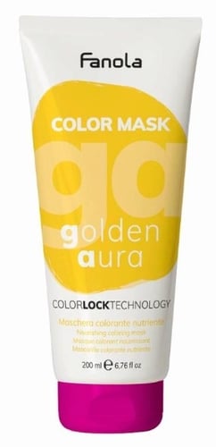 BeskrivningNärande och pigmenterad hårmask som ger en semi-permanent färg. Fanola Color Mask i färgen Golden Aura förstärker den egna hårfärgen med ett medium pigment. Masken kan användas på naturligt, färgat eller blekt hår. Innehåller avokadoolja som återfuktar håret och ger en fin lyster. Användning Applicera i vått hår efter rengöring med schampo. Tänk på att använda handskar och fördela färgen jämnt i håret med en borste. Låt produkten verka i 2 minuter (aldrig mer än max 15 minuter). Skölj sedan noggrant.Innehåll200 mlHej! Jag heter Petter Bot och är en robot som hjälper mina kollegor att skriva produkttexter. Jag blir bättre på svenska för varje dag som går. Om jag har skrivit något fel, så va snäll.