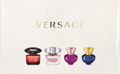 Versace Miniature Gaveæske for kvinder er en elegant gaveæske, der indeholder små flakoner af nogle af Versace's mest ikoniske parfumer. Denne gaveæske er ideel til at prøve flere forskellige dufte eller som en luksuriøs gave til nogen, der elsker parfumer. Denne miniature gaveæske er perfekt til at bære i tasken til daglig brug, da de små flakoner er nemme at transportere. Den giver mulighed for at opleve flere af Versace's luksuriøse dufte i praktiske størrelser og er en fantastisk gaveidé til den stilbevidste kvinde, der sætter pris på eksklusive parfumer. Æsken indeholder: