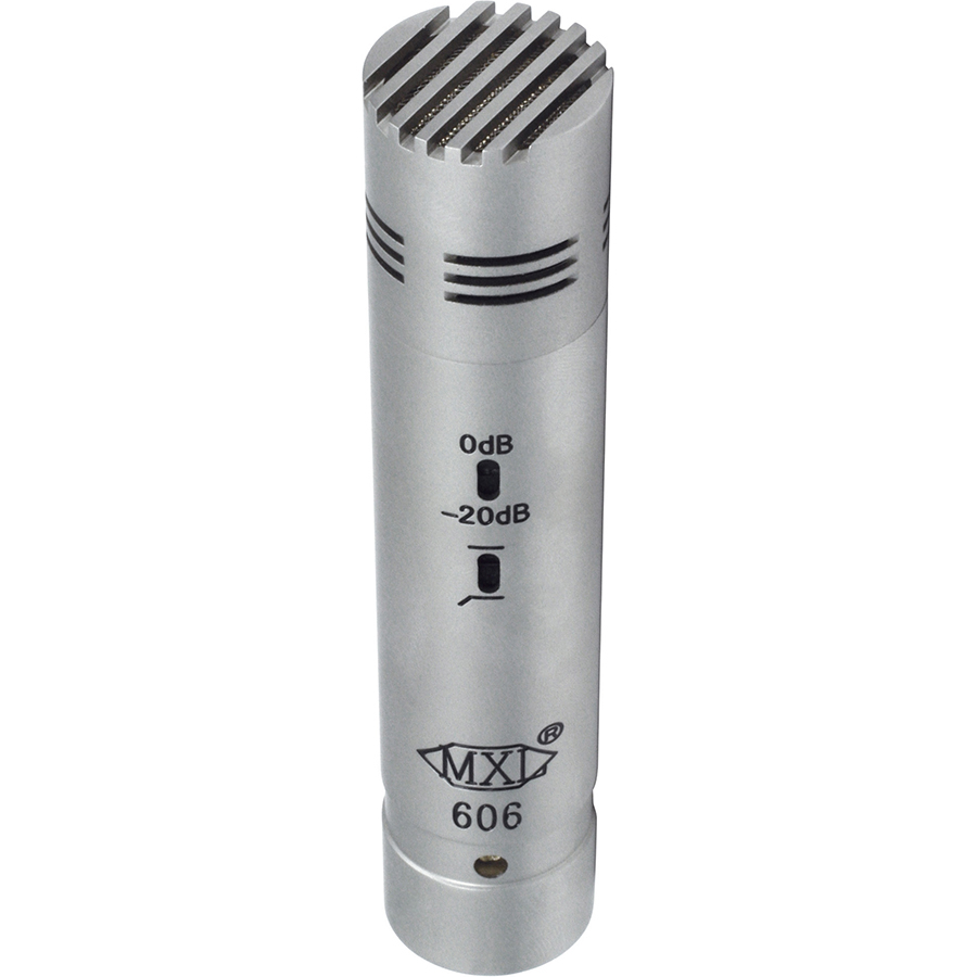 The MXL 606 instrument microphone delivers the sound you are looking for when recording snare drums, high-hat cymbals, acoustic guitars, pianos, percussion, stringed instruments and more. Using transformerless FET circuitry and a gold-sputtered diaphragm capsule provides a clean and clear tone. The 606 also features a -20 dB switchable attenuation pad and low-frequency roll-off. Small-diaphragm instrument mic with a warm, detailed sound Transformerless FET circuitry for clean, clear recordings Bass roll-off and attenuator to fit any recording situation Excellent detail in the midrange and at the top end Ideal for percussion, acoustic guitars and pianos Type Pressure grandient condenser mic Diaphram Gold-sputtered, 6 micron Capsule Size 22mm/87in Frequency Response 30Hz – 20kHz Polar pattern Cardioid Sensitivity 15 mV/Pa Output Impedance 150 ohms Equivalent noise 17 dB (A-weighted IEC 268-4) S/N Ratio 77 dB (Ref. 1 PA A-weighted) Max SPL for .5% THD 137 dB Power Requirements 48V phantom power (+/- 4V) Size 110mm x 23mm/4.3 in x 0,89 in Weight 0.25 lbs/113g Metal Finish Silver