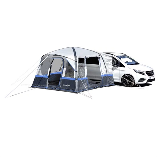 Dette bustelt med AIRTech-teknologi giver dig 8 m² ekstra plads ved dit køretøj. Den integrerede elektriske pumpe med genopladeligt batteri gør opsætningen hurtig og nem. Teltet er kompatibelt med køretøjer mellem 180 og 240 cm i højden og er fremstillet i holdbart 150D Oxford Polyester PU-materiale, der beskytter mod vind og vejr.