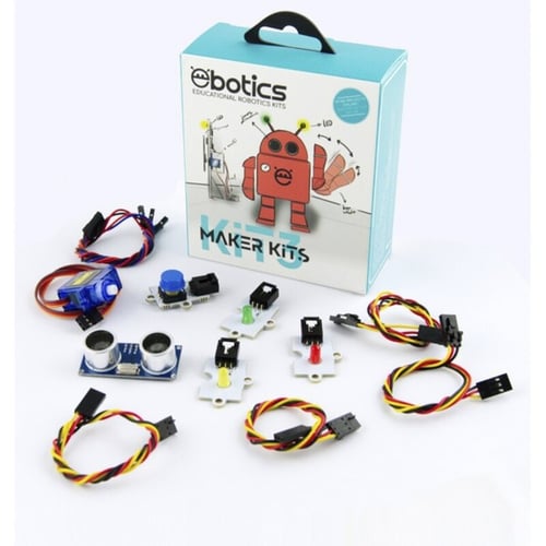 Om du älskar IT och elektronik, tycker om teknik och inte vill missa en enda grej, köp Robot-kit Maker 3 till ett oslagbart pris.Kombinera med vardagliga föremål för att göra egna uppfinningar: Interaktiv robotKassaskåpRadar 180ºAutomatisk parkeringsportSignalljus med bomLED: RödGulGreenInnehåller: KnappUltraljudssensorServomotorKrav: Robot-kit Maker Control