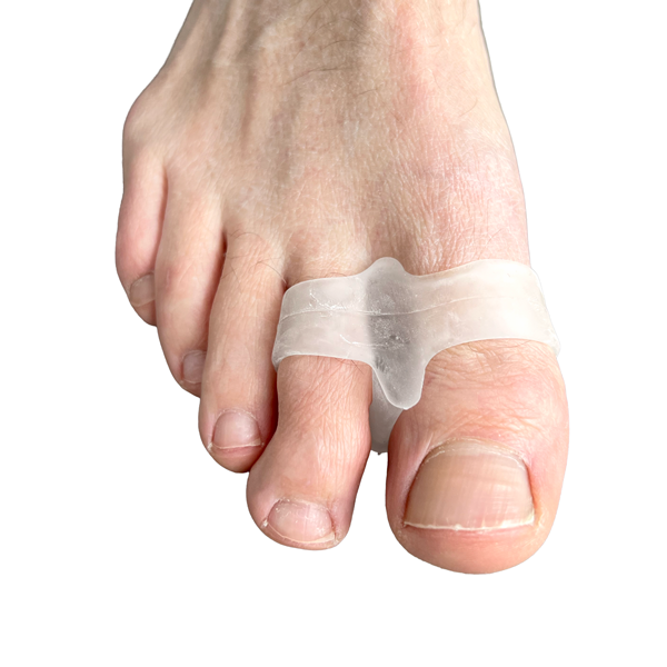En blød tå-skiller med to ringe, som holder tæerne adskilt og forhindrer friktion, hård hud og ligtorne mellem 1. og 2. tå. Kan bruges i både hverdags- og tætsiddende sko.