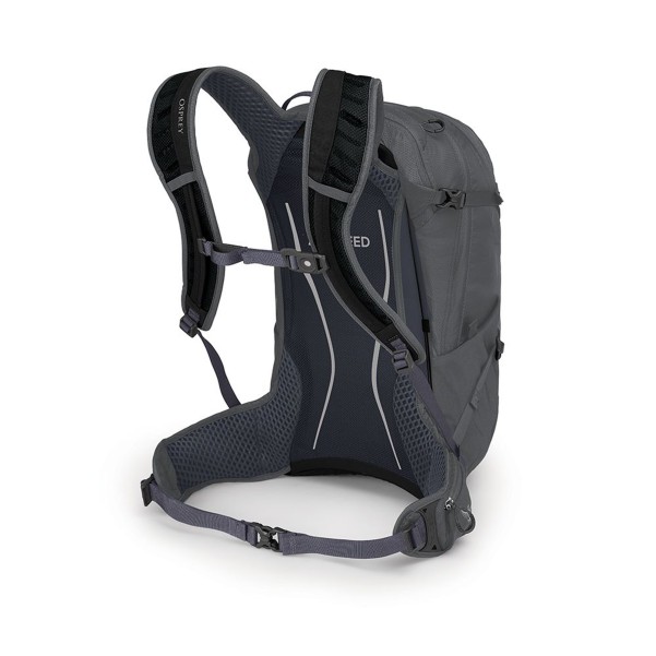 Rummer 20 liter, Ventileret ryg samt bæresystem, Mange gode lommer, Indbygget high-viz regnovertræk, Vægt: 890 g., Osprey Syncro 20 er en yderst ventileret rygsæk til den aktive hverdag. Ryggen er Ospreys velkendte Airspeed som tillader varmen at komme væk fra ryggen samtidig med at det støtter godt. Skuldreremme samt hoftebælte er naturligvis gjort så åndbart som muligt samtidig med at det yder den bærekomfort som man har brug for på farten. Skuldreremmene samt brystremmen er naturligvis justerbare. Hoftebæltet har een lynlåslukket lomme på hver side. Selve tasken består af hele tre rum. Et lille rum øverst oppe til småtingene. Det store hovedrum åbnes med en stor lynlås så det er nemt at overskue indholdet. Det yderste rum består af små netlommer, een lille lomme med lynlås samt to brede elastikker til fastspænding af f.eks den kompakte cykelpumpe. På fronten af rygsækken er der en strækbar lomme så man nemt kan komme til vindjakken eller andre ting der er rare at have tæt på. På begge sider er der mindre strækbare lommer som kan nåes mens at man har rygsækken på. Disse rummer drikkeflasken, vanterne eller andre småting. Syncro 20 er forberedt til drikkesystem samt har Ospreys eget Lidlock som som er ophæng til din cykelhjelm. Der er masser af reflekser for øget sikkerhed i mørket og der er endda gjort plads så man kan fastgøre en baglygte hvis behovet opstår. Der medfølger et grønt high vis regnoverslag. Osprey Syncro 20 er designet til den aktive hverdag eller dem som ønsker en lækker daypack med en fantastisk ventilation.