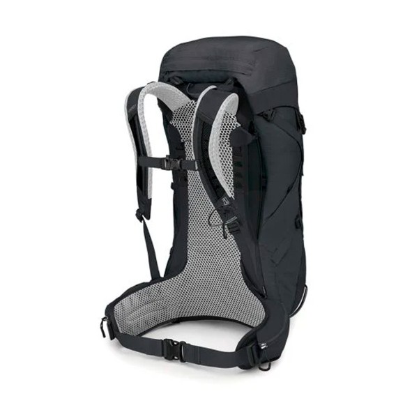 Rummer 36 liter, Airspeed ventileret bæresystem, Justerbar ryg, mange gode lommer., Der medfølger regnovertræk, Vægt: 1,49 kg, Ventilerende og slidstærk rygsæk. Ryggen, de polstrede skuldreremme og det polstrede hoftebælte er bygget op omkring Ospreys Airspeed system. Dette betyder at der er en fremragende ventilation samtidig med en god bærekomfort. Der er topstrammere, justerbar brystrem og så kan ryglængden nemt justeres. Dette gør at den kan tilpasses lige netop din ryg. Praktisk toplåg giver sammen med en snelås adgang til hovedrummet. I dette låg er der udvendigt en stor lynlåslomme til de praktiske småting, indvendigt en mindre mesh lomme til dit pas og nøgler. Hovedrummet er delt i to, det nederste er lidt mindre og kan tilgåes ved en to-vejs lynlås nederst på rygsækken. Der naturligvis plads til et drikkesystem. På fronten findes en stor lynlås lukket lomme, denne rummer din dunjakke som er praktisk at have tæt på. Strækbare meshlommer på sidderne, lynlås lukket lommer på hoftebæltet. Nederst er et rum med indbygget regnovertræk. Den måler: 71 x 37 x 27 cm. Der er kompressions stropper som også kan benyttes til fastspænding af udstyr, der er klargjort elastiksystem til vandrestave og isøkse. Camino vandringer, Kilimanjaro og længere dagsture er denne rygsæk velegnet til.