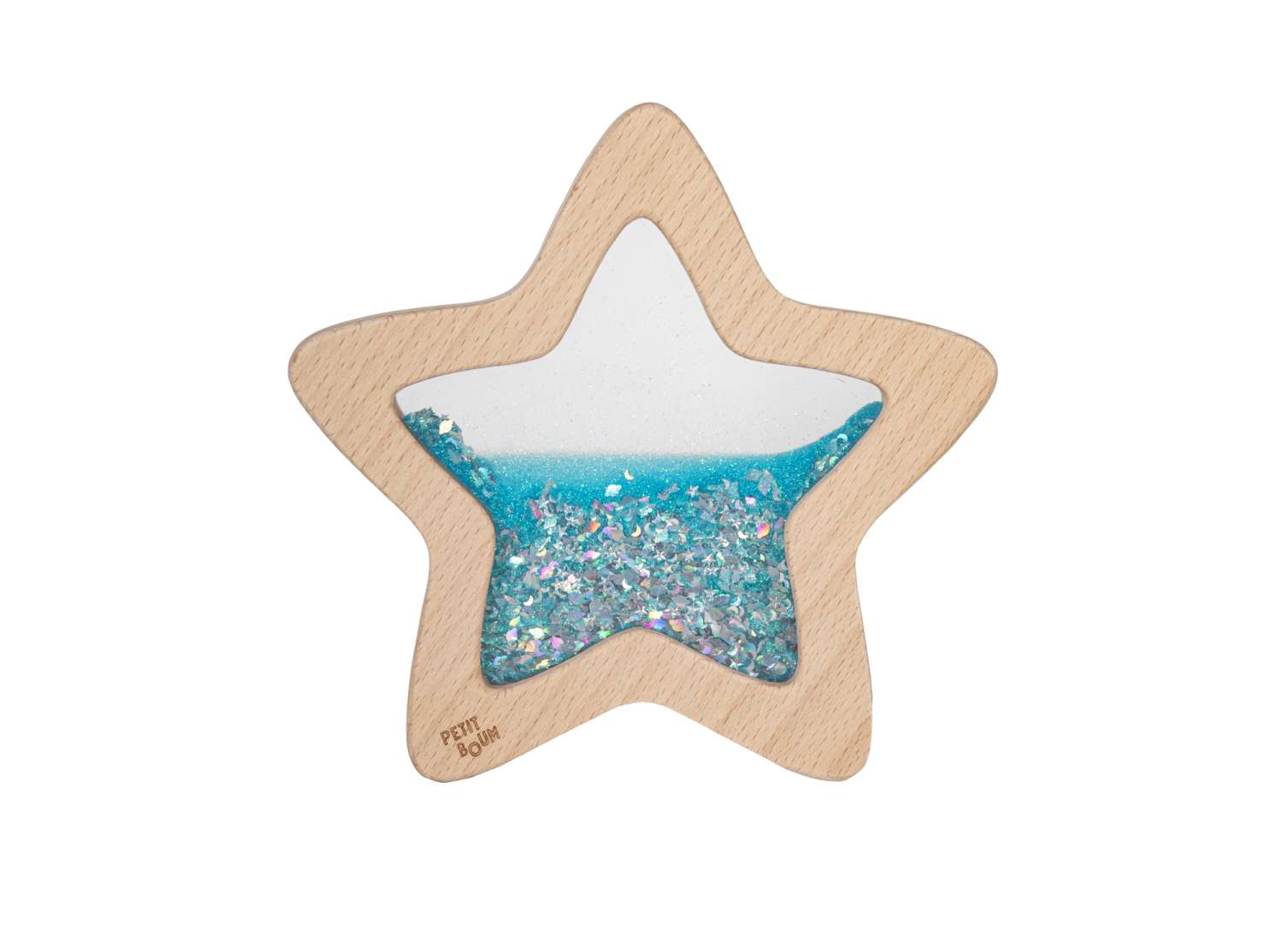 Et lille stykke af galaksen i din hånd. En magisk stjerne med væske, der er fyldt med selvlysende glitter, glimmer og palietter. vend stjernen og se hvordan indholdet langsomt flyder rundt mens det glitrer som tusind stjerner inde i stjernen. Brug stjernen på et lysbord, eller hold den op, så lyset skinner igennem den og bliver reflekteret i glitteret. Orionis sansestjerne er et genialt mindfulness-værktøj og kan afhjælpe stress og angst. Sansestjernen er også et rigtig godt redskab ved visuel stimming. Det vil sige når man beroliges af visuelt input ved overstimulering. Her vil det netop ofte være ting som lys, reflektioner, smukke farver og noget, der bevæger sig i jævnt og roligt tempo, der fanger. Lidt fakta om sanseflasken fra Petit Boum: Størrelse: 19 cm x 19 cm x 2 cm. Materiale: Kant af birketræsfiner og midten af hård plast. Læg dem ikke i vand. Tør dem af med en fugtig klud, hvis de bliver beskidte. Lad dem ikke ligge i solen i længere tid. Anbefales fra 6 mdr.