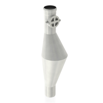 ACO Rottestop monteres i et lodret ø110 mm afløbsrør. Rottestoppet er udført i rustfrit stål og består af to sam- mensvejste keglestubbe, der på midten måler ø250 mm. I hver ende er der påsvejst et rørstykke med dimension
