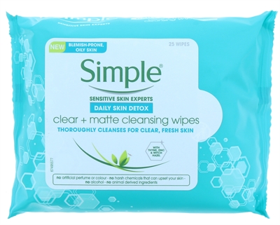 Simple Facial Wipes Clear & Matte Cleansing Wipes 25's