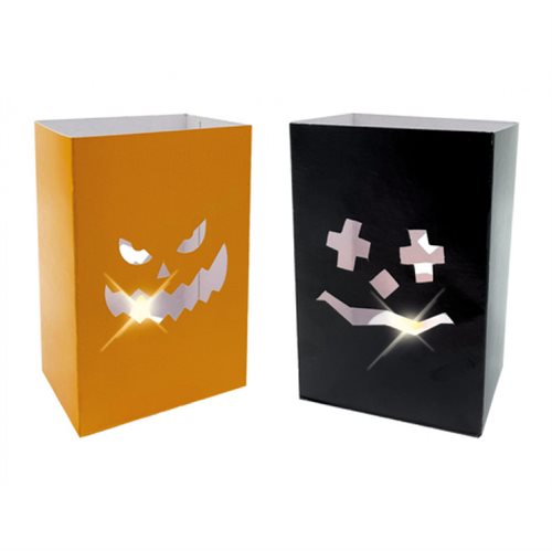 BeskrivningLykta med LED värmeljus. CR2032 batteri ingår.Specifikationer:Material:PapFärg:Sort/OrangeLängd:7 cmHöjd:10,5 cmBredd:5 cm