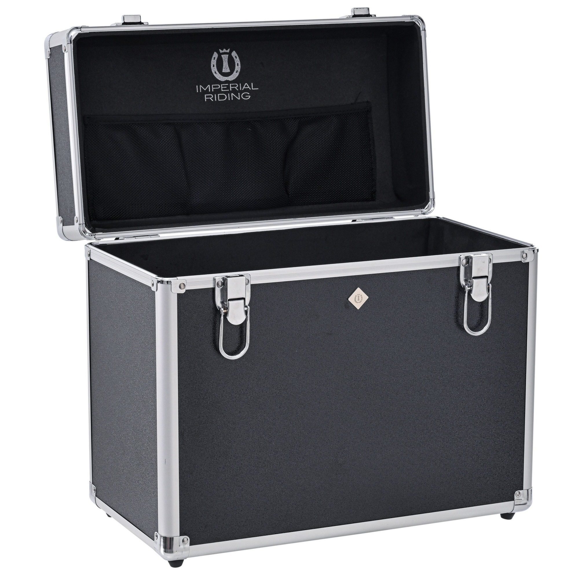 En Grooming Box IRHBasic Slim line er en striglekasse, der er designet til at være både praktisk og stilfuld. Den er fremstillet med et slankt og moderne design, der gør den nem at transportere, samtidig med at den har god plads til dit strigleudstyr. Kompakt og letvægts: Det slanke design og lette materiale gør kassen nem at håndtere og transportere, uanset om du er i stalden, til stævne eller på farten. God opbevaringsplads: Selvom kassen er slank, har den en rummelig indvendig plads. Den er ofte udstyret med flere rum eller en aftagelig bakke, så du let kan organisere dine strigler, hovrenser og andre småting. Holdbart design: Kassen er typisk lavet af et robust materiale, der kan modstå daglig slitage i staldmiljøet. Ca 20cm x 38cm x 34cm