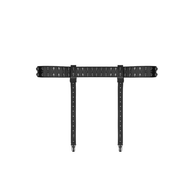 Dette sorte hoftebånd er utrolig sexet, men hvorfor ikke give det lidt ekstra? Lavet af højkvalitets sort syntetisk læder, er det prydet med kranier. Mål: 113 cm x 4,2 cm
