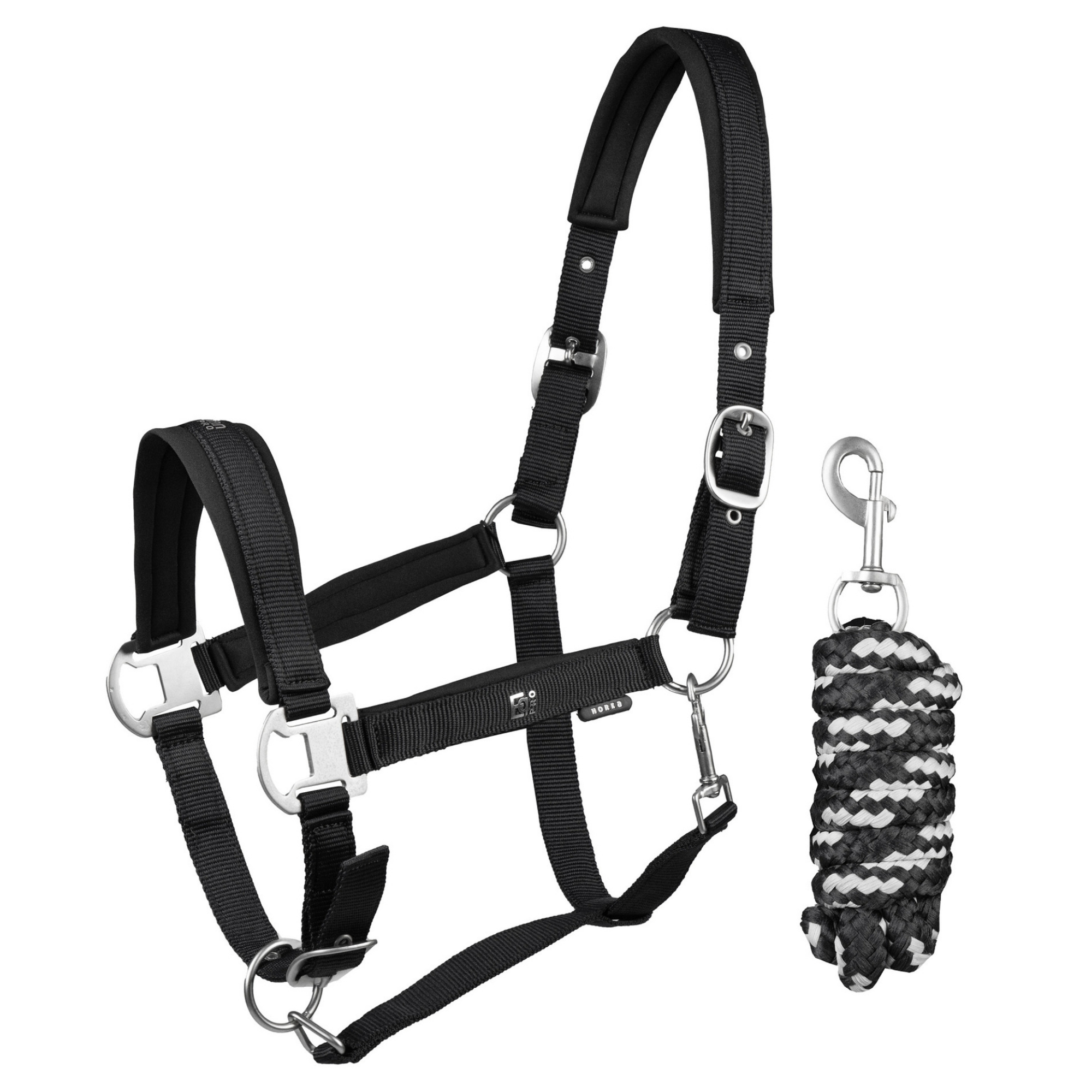 Grimesæt Precious – Sort/Grå Stilrent design og maksimal komfort til din hest Gør hverdagen lidt mere eksklusiv med det elegante Precious grimesæt. Dette sæt kombinerer et minimalistisk, sort-gråt look med gennemtænkte detaljer, der sikrer, at din hest føler sig godt tilpas, uanset om den står på staldgangen eller er under transport. Blød beskyttelse og optimal pasform Glem alt om slidmærker og trykpunkter. Grimen er foret med blødt neopren polstring ved både nakkestykke, kindstykker og næsebånd. Det åndbare materiale giver en suveræn komfort og beskytter hestens følsomme områder. For at sikre den perfekte pasform til netop din hest, er grimen fuldt justerbar ved både nakken og næsen. Hvorfor vælge Precious grimesættet? Komplet sæt: Indeholder både grime og et matchende 200 cm træktov. Høj komfort: Blød polstring minimerer risikoen for gnavsår. Stilfulde detaljer: Udstyret med elegante, matte sølvfarvede spænder. Holdbart grej: Kraftig karabinhage på træktovet sikrer god kontrol. Alsidig brug: Det ideelle valg til både daglig træning, fold og transport. Materiale: Slidstærk nylon med neopren Hardware: Matte sølvfarvede spænder