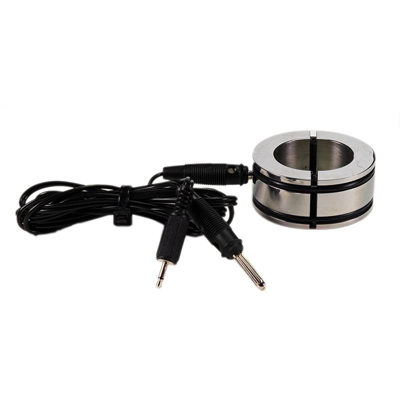 Denne ring til testiklerne inkluderer kablet med bananstik. Den består af to halv_ringe (+ og -) i gummi, der danner en fuld ring med en diameter på 3,4 cm (indvendig). Kun når de to ringe er samlet og berører huden, vil elektroden blive aktiveret. Takket være sin 2,5 mm stik kan du forbinde den til Rimba Power Box. Husk, at hvis du har følsom eller irriteret hud, er gravid, eller har hjertesygdomme, bør du ikke bruge denne ring. Brug et ledende gel for at opleve de bedste resultater. Information: Indvendig diameter: 3,4 cm Aluminium