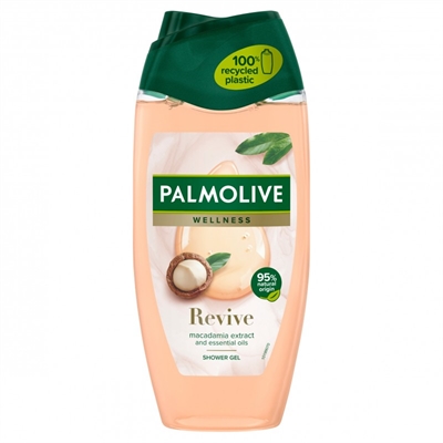 Palmolive Wellness Revive Macadamia Extract showergel har en lätt skummande formel som rengör huden utan att ta bort hudens naturliga fett. Produkten förvandlas till ett underbart, skonsamt skum som inte torkar ut huden.