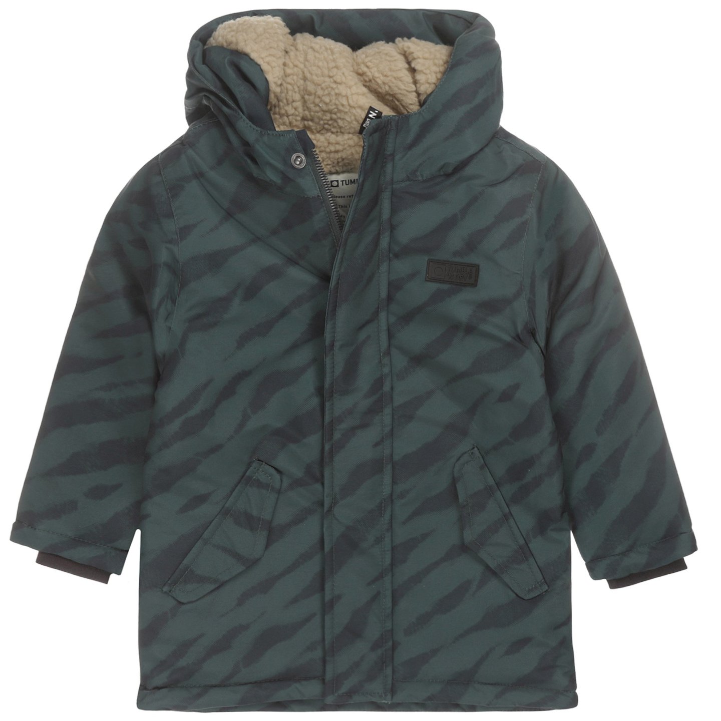I denne halvlange, militærgrønne vinterjakke med grafisk dyreprint kan drenge klare selv de mest barske vejrforhold. Jakken er vind- og vandtæt, lavet af genanvendt polyester og udstyret med en hætte foret med teddy, en lynlås med trykknaplukning. Derudover har jakken elastiske manchetter og klaplommer foran med trykknaplukning. Klar til vinteren!