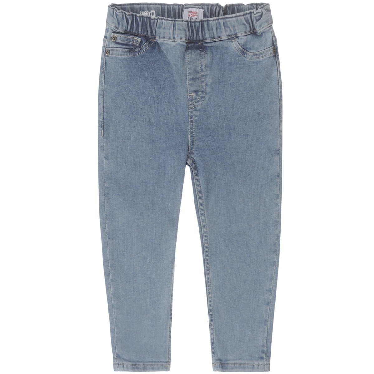 En lyseblå jeans med komforten fra en joggingbuks? Fundet. Denne jeans har ikke knap- og lynlås, men en perfekt sidende elastisk talje. Og hvor behagelig den er! Jeansene er lavet af blødt denim og har to falske lommer foran samt to stiklommer bagpå. Den baggy fit gør dem helt sæsonpassende – perfekte til både drenge og piger!