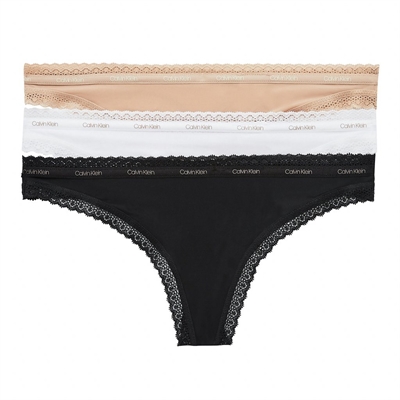 Beskrivning Trosor med en slät, ren look och en subtil touch av spets. Medelhög midja och Calvin Klein signaturresår midjeband. Specifikationer: Material: Mikrofiber jersey - 85 % polyamid 15 % elasthan Färg: Sort/Hvid/Beige Storlek: L