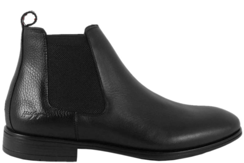 TOMMY HILFIGER TECHNICAL. Super smart Chelsea støvle fra Tommy Hilfiger. Støvlen er lavet af sort glat skind. På begge sider af støvlen er der elastik, så den er let at komme i og af. På ydresiden af hælkappen står der diskret "Hilfiger". Indvendigt er den foret med sort skind og tekstil og har en indlægssål i skind. Slidsålen er en sort gummisål. Rigtig flot og klassisk støvle til herre, fra Tommy Hilfiger. .. Læs mere på https://www.juul-sko.dk/herresko/herrestoevler/tommy-hilfgier-str44.htm