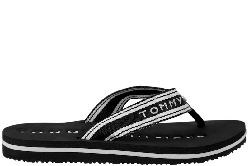 TOMMY HILFIGER - TH WEBBING SUMMER SANDAL. Super fin slippers fra Tommy Hilfiger til damer. Sandalen er lavet af sort og hvid tekstil og har en tårem, samt to remme som går over forfoden. På remmen står der "TOMMY". Dæksålen samt slidsålen er lavet af sort EVA. EVA gør den behagelig at træde på. Super god slippers som både kan bruges til pool og som almindelig sandal. .. Læs mere på https://www.juul-sko.dk/damesko/slippers/tommy-hilfiger-16288-str40.htm