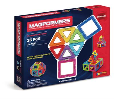 BeskrivningThe perfect set for building the Magic Ball! This set contains 18 Squares and 8 Triangles, the exact number required to build the Magic Ball.Magnets embedded in the sides of triangles, squares and pentagons spin freely to automatically align properly and connect to each other upon contact. Magformers always connect regardless of their polarity.Specifikationer:Färg:MultiVikt:5,2 KG