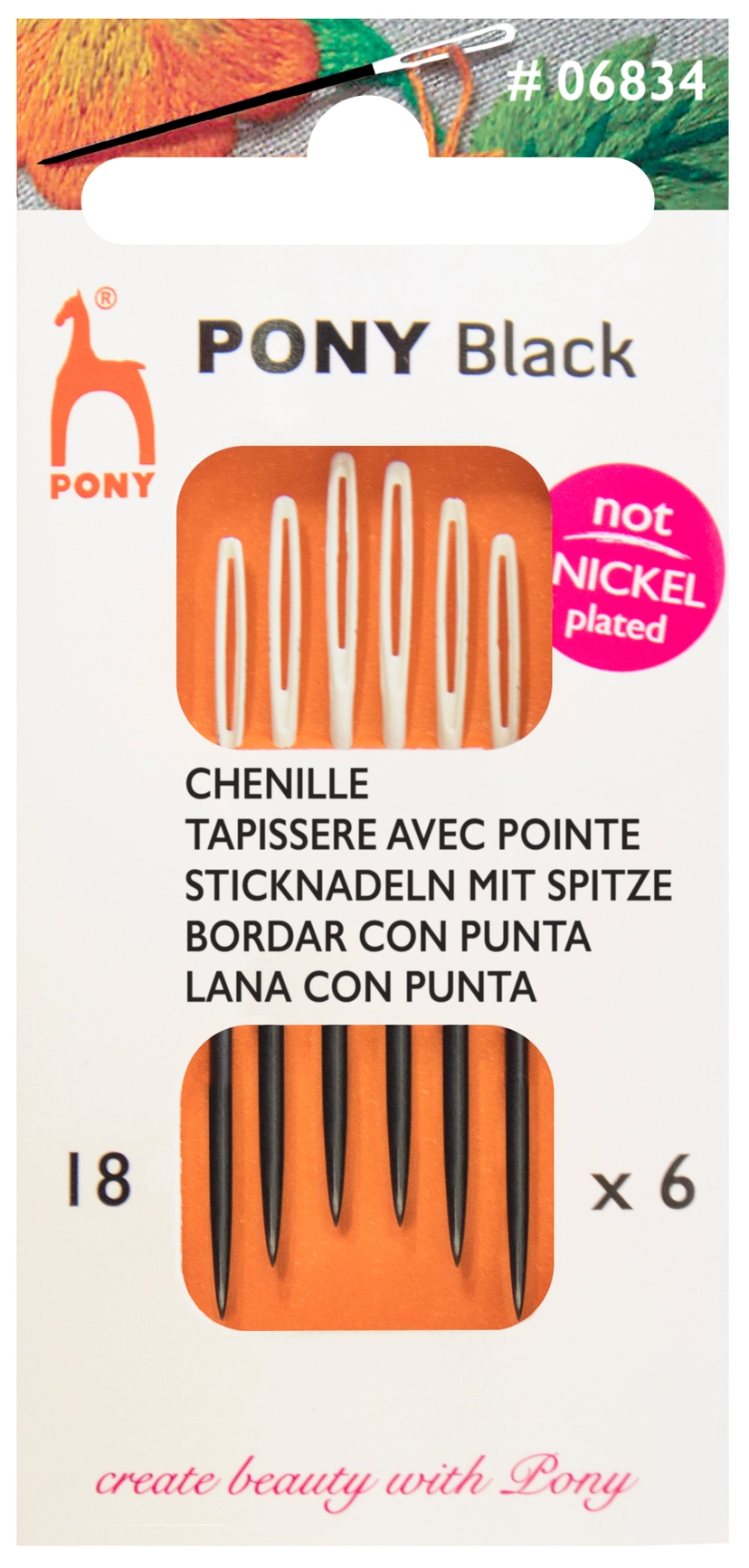 Pony black stramajnåle m/spids str.18, 6stk, 06834