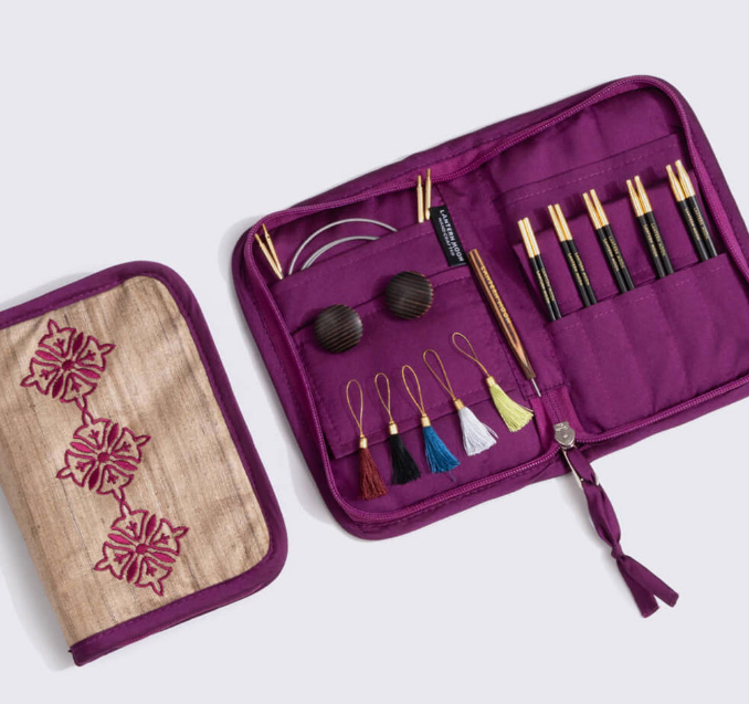 Luksuriøst rundpindesæt til dine yndlingsprojekter Vi elsker at forkæle os selv og hinanden med gode redskaber, når vi strikker! Vores udskiftbare rundpindesæt i ibenholttræ kombinerer elegance og funktionalitet. Perfekt til mindre bluser, babytøj eller andre projekter, hvor de korte pinde og bløde wirer giver optimal komfort – og det hele pakket smukt ind i et silkeomslag. Materiale: Ibenholttræ Pindelængde: ca. 10 cm Størrelser: 3–5 mm (5 sæt) Wirer: 40 cm og 50 cm Glider let med maskerne og har hukommelsesfri wire Leveres med maskemarkører, stoppere og strammenøgle Opbevaring: Silkeetui med lynlås og plads til tilbehør