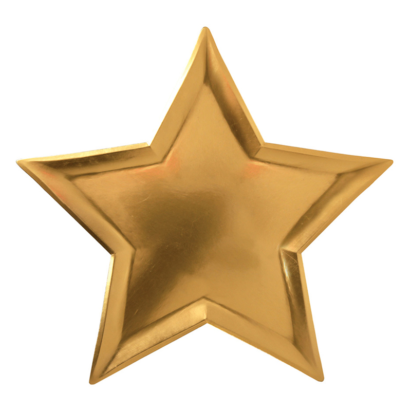 Super flotte paptallerkner fra Meri Meri med fine guldfolie detaljer - formet som gyldne skinnende stjerner. Tallerknerne er perfekte til at skabe en festlig stemning på bordet til fødselsdage og fester - især til nytårsfesten eller festen med trylleri og magi som tema. Tallerknerne er fra Meri Meri, der er stor producent af gennemførte fest- og fødselsdagstemaer, hvor du kan få alt fra servietter, krus og paptallerkner til lys, balloner og kage udstikkere. Meri Meri har alle de produkter, der skal bruges for at dække et flot festbord. Pakken indeholder 8 tallerkner. Måler 27,9 x 27,9 cm. Se alle varer fra Meri Meri