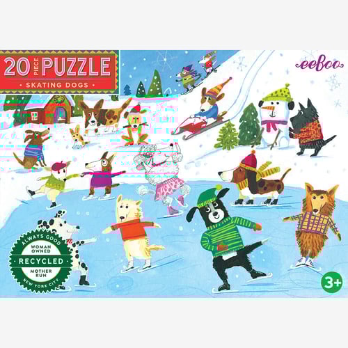 eeBoo - Pussel 20 brk - Skridskoåkande hundar