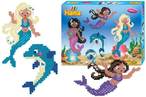 Pakken indeholder Ca. 4.000 perler, 2 store firkantede stiftplader nr. 234, 2 Hama Gems, motivark, vejledning og strygepapir.