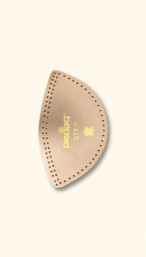The symmetrically shaped flatfoot wedge made of fine cowhide supports and relieves lowered archs and helps to prevent or alleviate problems with flat and arched feet.\n\n\nPain on the outside of the foot, which radiates into the leg or even the back, can be signs of a flat foot: The longitudinal arch is flattened, the foot becomes longer and wider - up to one shoe size. A flat foot wedge can alleviate and prevent discomfort.\n\nThe symmetrically shaped flatfoot wedge pedag Step lifts the longitudinal arch of the foot and returns it to its natural position. Stick the wedge with the highest point in the middle of the longitudinal arch into the shoe and your foot enjoys full support.\n\nThe surface is made of fine, vegetable tanned cowhide, the supporting blank is made of elastic foam rubber, which absorbs the body weight in a shock-absorbing manner.\n\n- relieves fallen arches\n- symmetrical shape\n- shock-absorbing foam rubber\n- fine, hand-picked cowhide