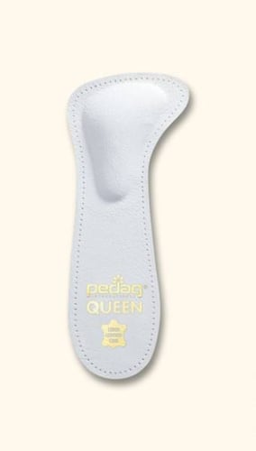 For royal comfort in case of splayfoot complaints: The feather-light and ultra-thin splayfoot support pedag Queen alleviates discomfort and prevents splayfoot.\n\nSplayfoot complaints with burning foot balls and aching feet can spoil the most beautiful day. Walking becomes torture, the feet quickly become tired. The splayfoot support pedag Queen is first aid for splayfoot complaints: Thanks to the integrated metatarsal pad, it supports the anatomically correct position of the metatarsals and can thus relieve pain.\n\nWith pedag Queen made of fine leather you can feel royal even in narrow shoes, because it is particularly light and thin and very narrowly cut. It does not wear out in pumps, sandals & high heels, but still provides optimum comfort and relief from splayfoot complaints.\n\nDiscover the secret of relaxed feet: the splayfoot support pedag Queen.\n\n- cushions the severe splayfoot\n- space-saving and light as a feather\n- extra slim and thin\n- ideal for pumps and open shoes\n- for all heel heights, even high heels\n- fine goatskin